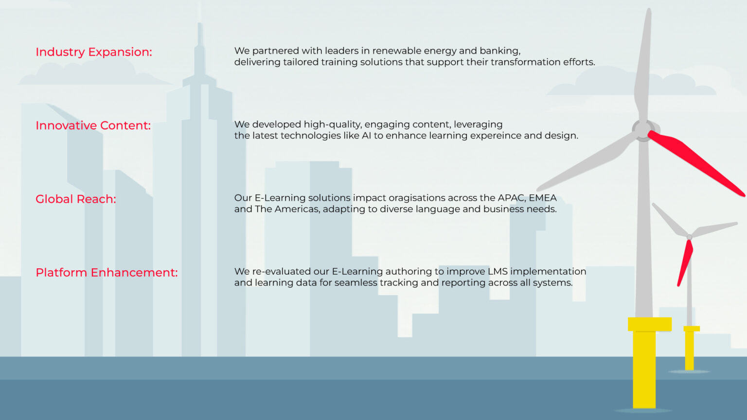 Looking ahead to 2026, Mind Machine is more committed than ever to serving industries that are undergoing massive change. Two of the sectors we’re most excited to continue working with in the new year are renewable energy and banking industries where e-learning design is becoming more crucial than ever.